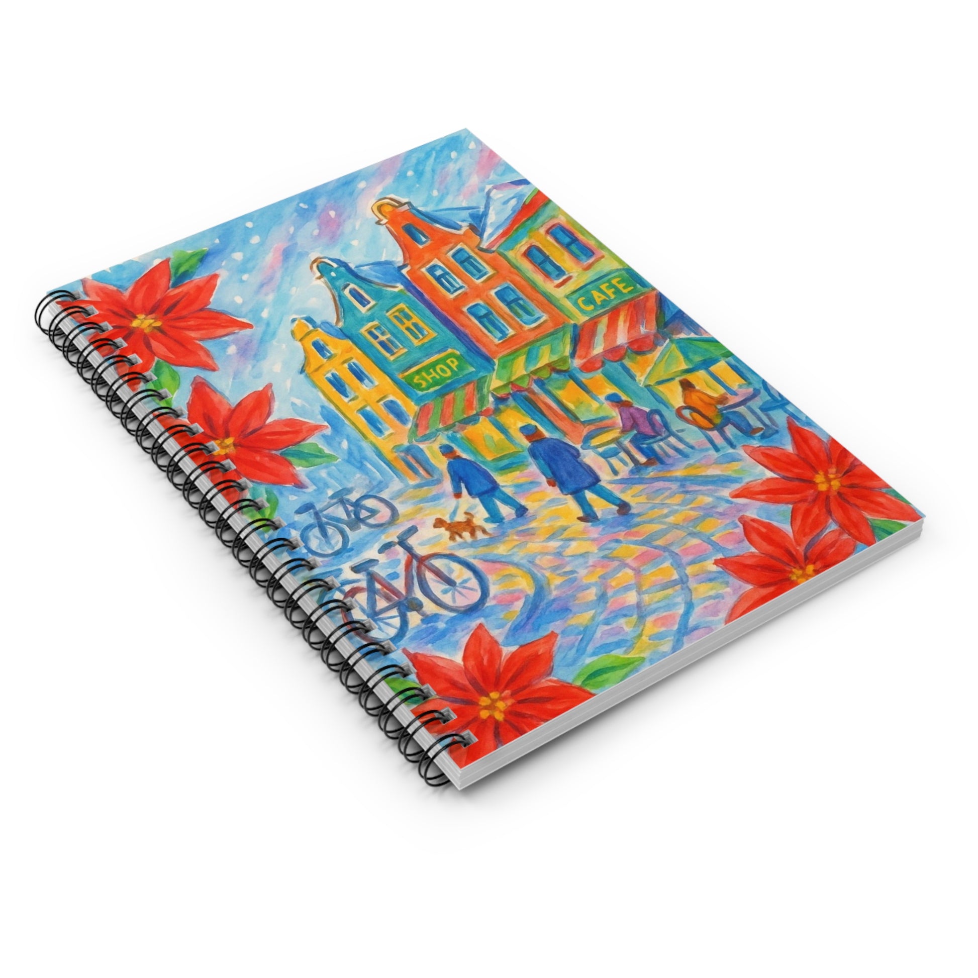 Colorful Cityscape Spiral Notebook - Artistic Journal for Writers, Gift for Students, Travel Diary, Cafe Lover's Notebook